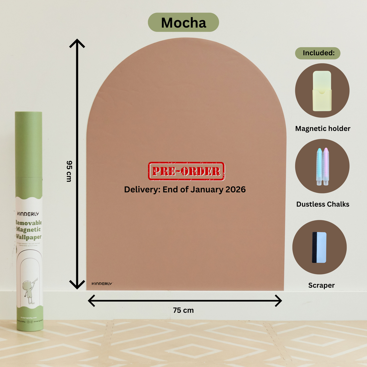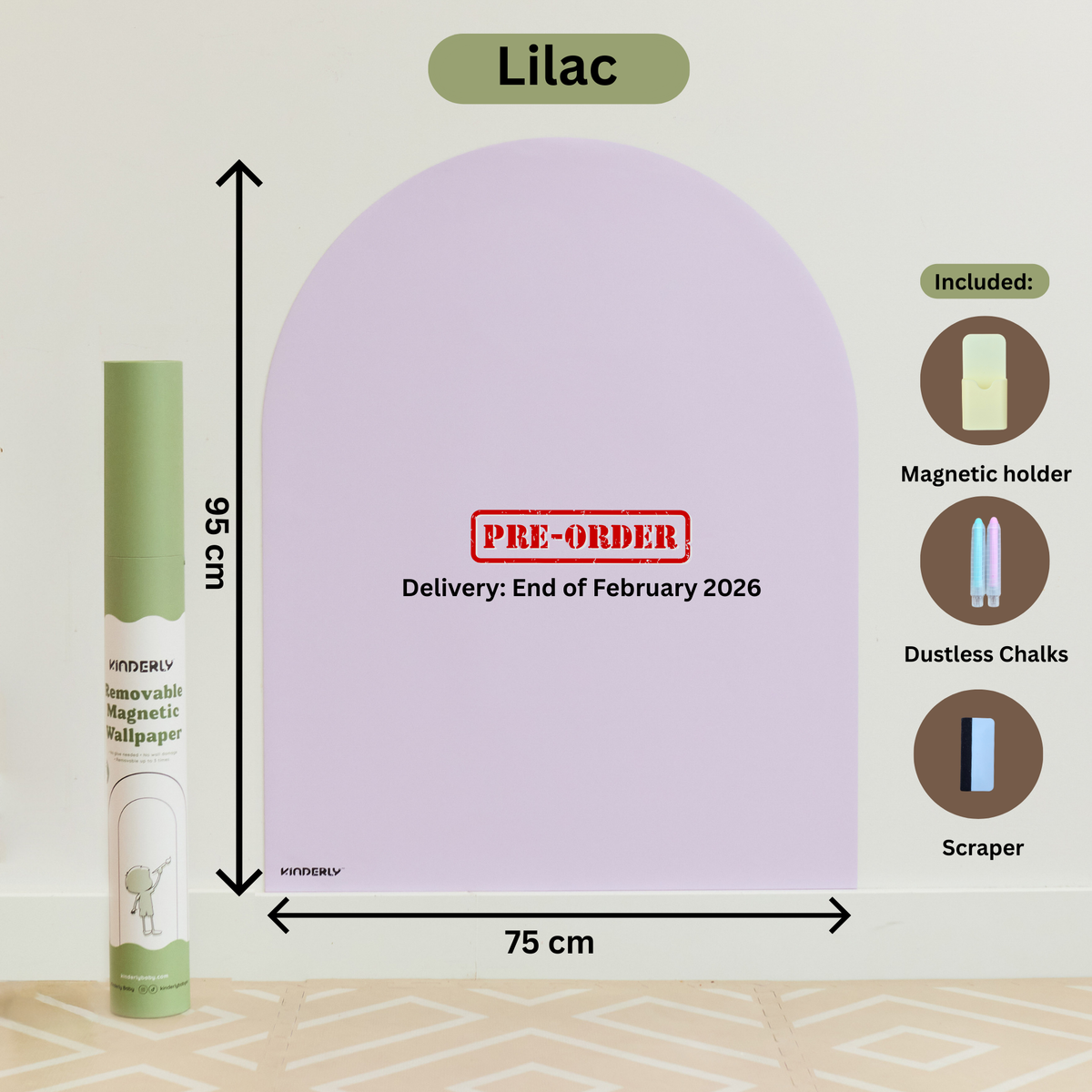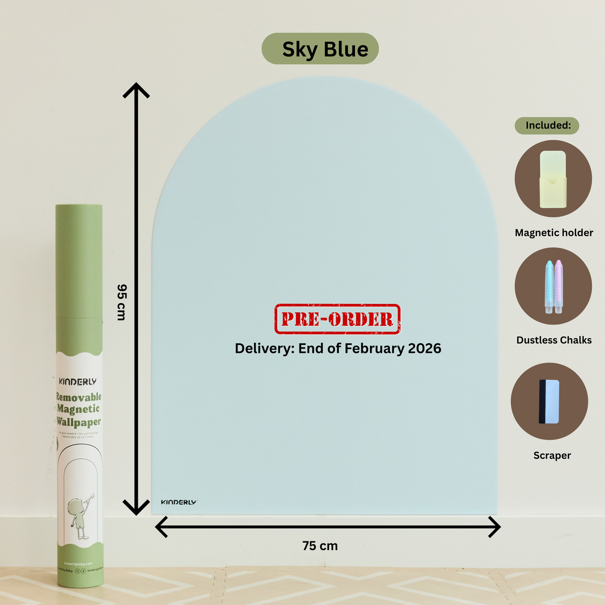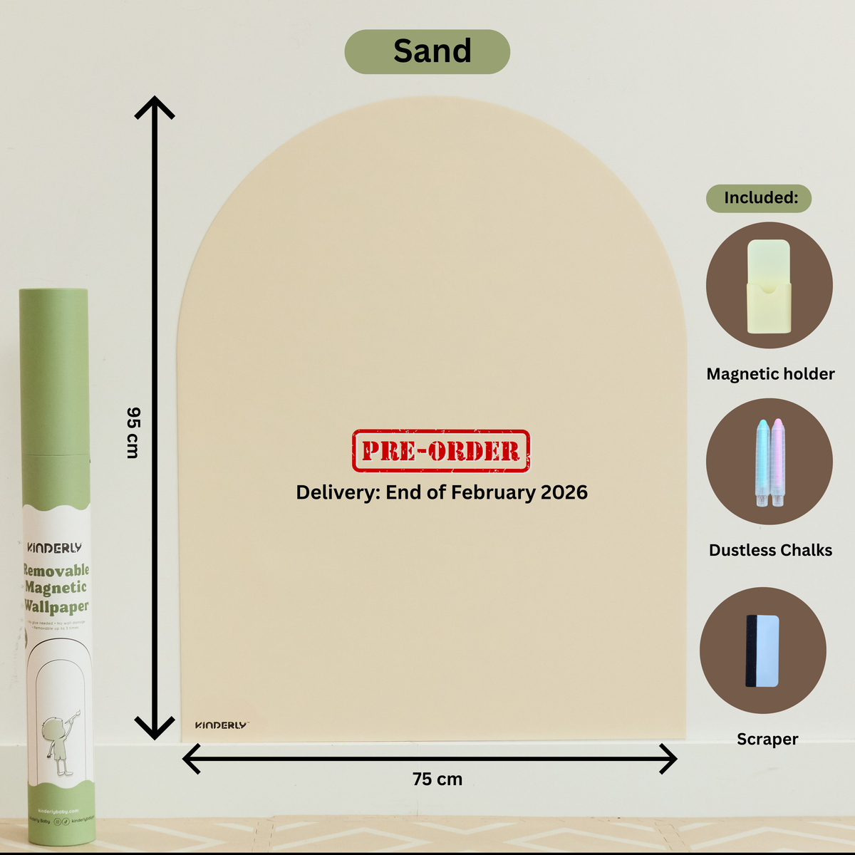 Our arch-shaped removable magnetic wallpaper features enhanced magnetic strength, new sturdy packaging, and comes with 3 bonus accessories (a magnetic holder, 2 dustless chalks, and scraper).