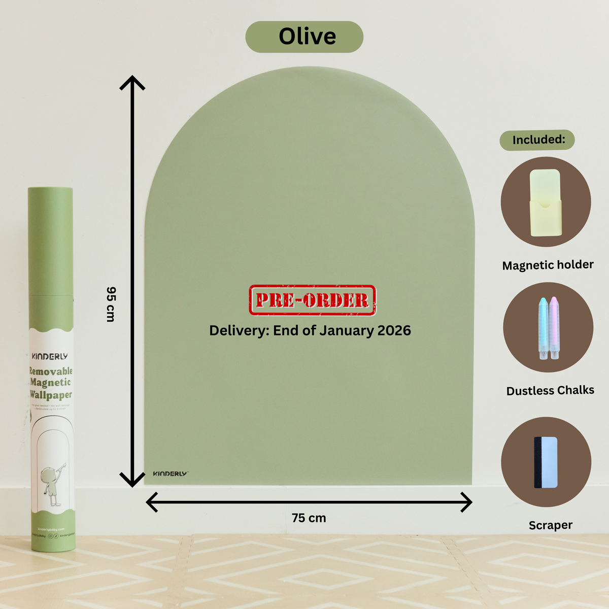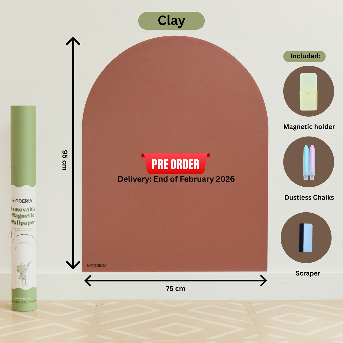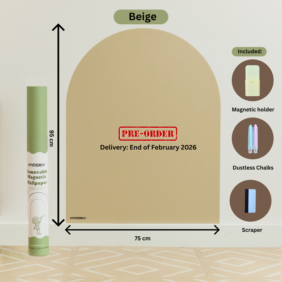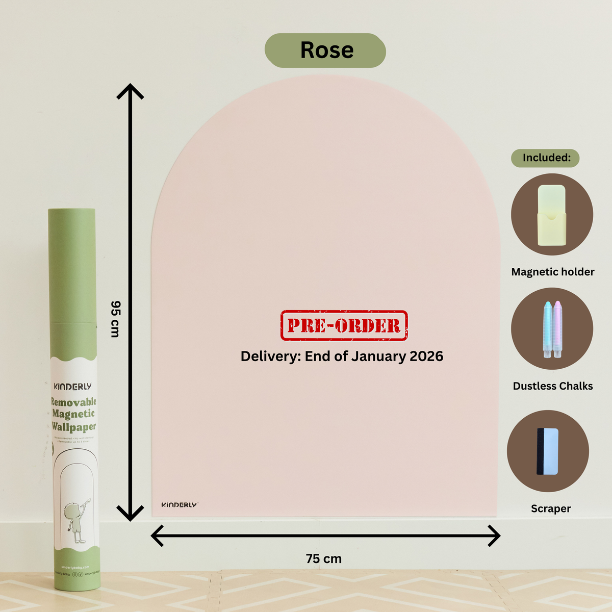 Our arch-shaped removable magnetic wallpaper features enhanced magnetic strength, new sturdy packaging, and comes with 3 bonus accessories (a magnetic holder, 2 dustless chalks, and scraper).